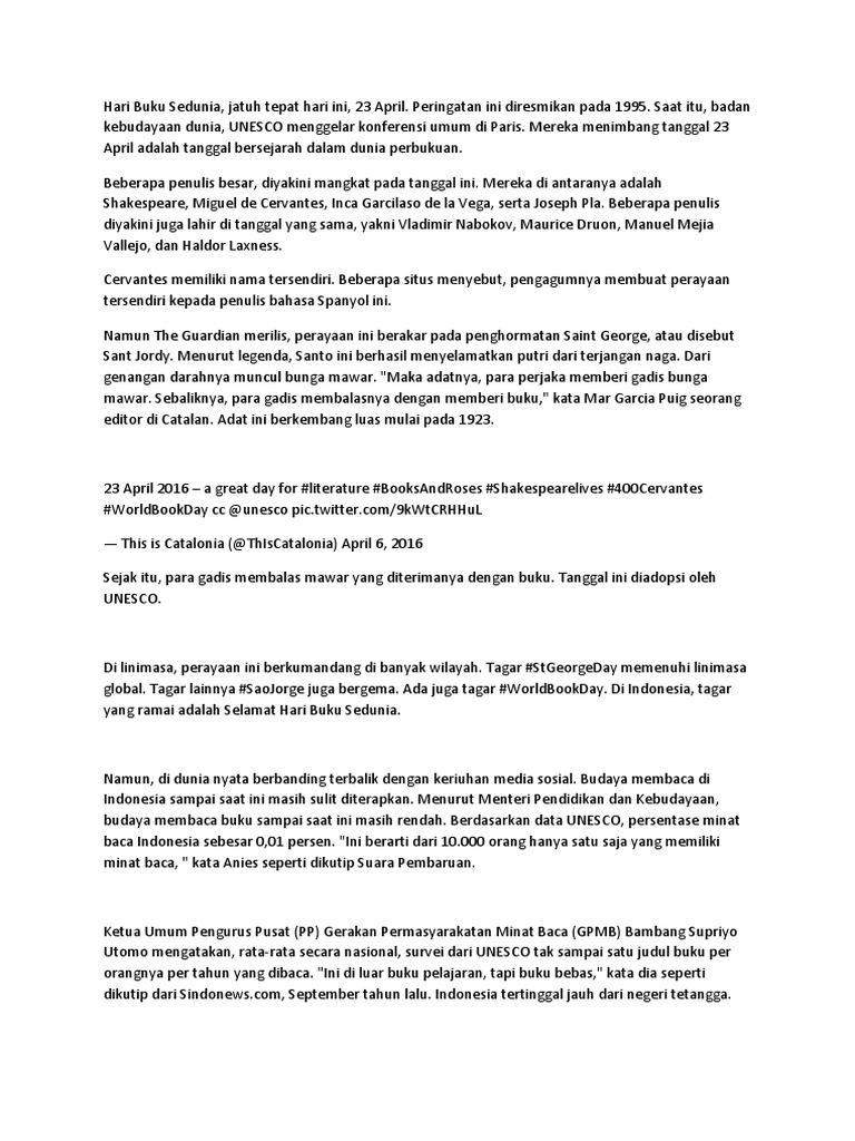 Berita 23 April Hari Buku Sedunia Harian Analisa