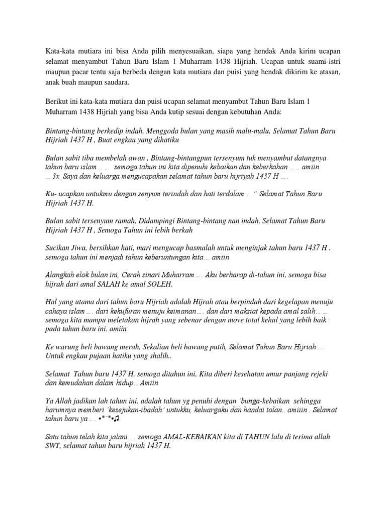 Setelah idul adha berlalu umat muslim akan menyambut tahun baru islam 2018 yang berdasarkan kalender masehi 1 muharram 1440 hijriyah jatuh pada selasa 11 september yang berarti kurang dari dua minggu lagi umat muslim akan merayakan pergantian tahun baru islam. Diahalaman ini kamu akan menemukan kumpulan kata kata mutiara bijak cinta sejati tentang kehidupan cinta mutiara lucu singkat motivasi hidup semangat indah singkat bagus buat status fb islam gambar. Selamat tahun baru islam 1440 hijriah 1 muharram.