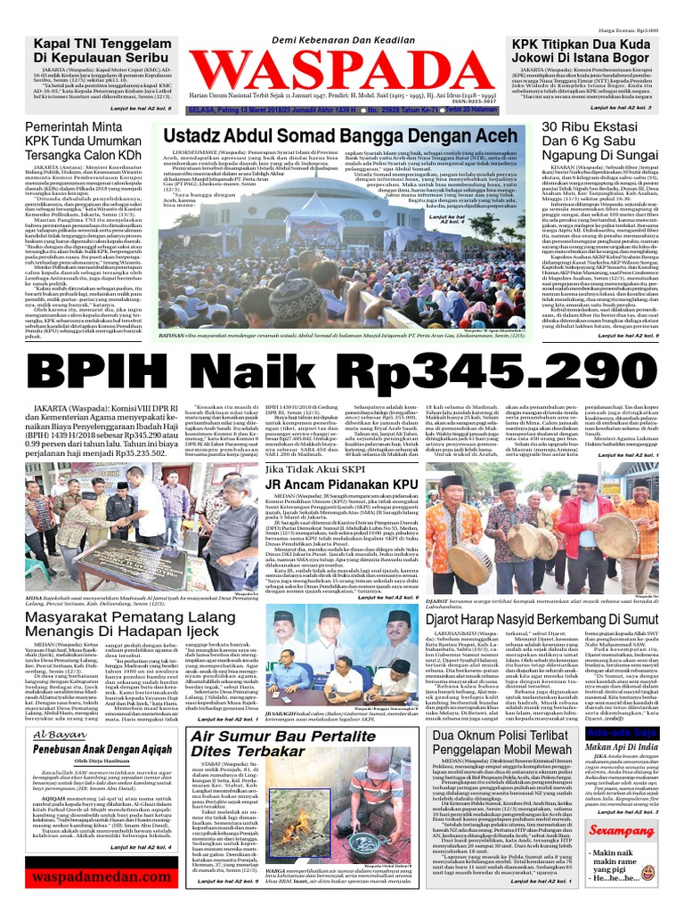 Harian Waspada Selasa 13 Maret 2018